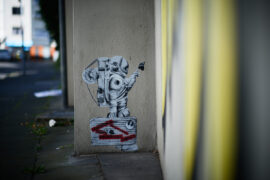 Sonniges Augustwochenende. Gerade richtig, um sich sich in Mülheim nach street art Kunstwerken umzuschauen. Besonders aktiv in diesem Veedel ist der Kölner street art Künstler SeiLeise, der mit seinen charakteristischen Paste-Ups gegen das etablierte Grau der Städte angeht und einen Teil der Farbgestaltung des urbanen Raums beeinflussen möchte.