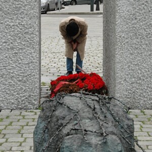 eine kleine Kachel an einer Hauswand. Der Satz klammert sich im Hirn fest und begleitet einen.
